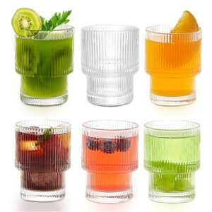 Entdecken Sie das HIGSPE 200ml Geriffelte Gläser Set, das aus 6 stilvollen Mini Wassergläsern besteht. Jedes Glas hat ein einzigartiges Rippendesign im Vintage Origami-Stil und eignet sich ideal für eine Vielzahl von Getränken wie Wasser, Eistee, Saft, Kaffee, Cocktails und Bier. Mit einem Fassungsvermögen von 200ml sind diese Gläser perfekt für jeden Anlass.