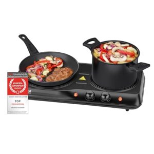 Die TZS First Austria Doppelkochplatte ist nicht nur platzsparend, sondern auch leicht zu reinigen und äußerst langlebig. Ihr zeitloses, schwarzes Design fügt sich nahtlos in jede Küche ein. Überzeugen Sie sich selbst von der hohen Qualität und den vielseitigen Einsatzmöglichkeiten dieser praktischen Herdplatte.