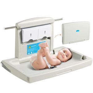 Die praktische Aufhängung an beiden Seiten bietet zusätzlichen Stauraum für Handtücher, Wickeltaschen oder Kleidung, sodass alles Wichtige griffbereit ist. Darüber hinaus ist die Installation der Wickelstation unkompliziert und mit standardmäßigen 16-Zoll-Aufbauten kompatibel. Sie eignet sich hervorragend für Wohnungen, Kindertagesstätten und Kindergärten und ermöglicht es Ihnen, mühelos einen komfortablen Wickelbereich zu schaffen.