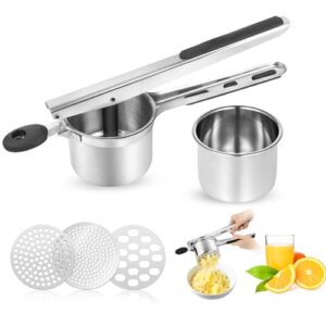 VFANDV Kartoffelpresse, Edelstahl Kartoffelstampfer mit 3 Austauschbaren Sieben Mehrzweck-Kartoffelpress für Kartoffelpüree Gemüsebrei Babynahrung Entsaften und Zitronen Auspressen