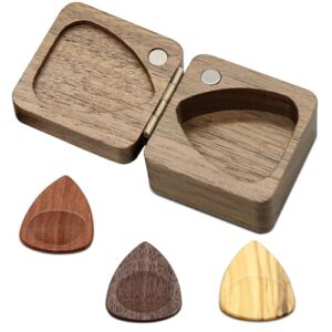 Entdecken Sie das Gitarren-Pickbox-Set, das aus hochwertigem Naturholz gefertigt ist. Jedes Plektrum bietet eine glatte Oberfläche und eine klare Textur, wodurch es nicht nur langlebig, sondern auch angenehm zu halten ist. Dieses Set besteht aus drei einzigartigen Plektren (Olivenholz, schwarzer Walnuss und roter Sandelholz) und einer praktischen Plektrumbox, die Ihnen hilft, Ihre Gitarrenzubehör kompakt und ordentlich zu verstauen.