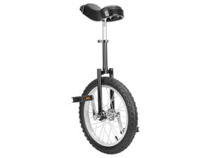 Die Gummireifen sind rutschfest und verschleißfest, was sie perfekt für verschiedene Untergründe wie Straßen, Hügel, Gras und Schotterwege macht. Der höhenverstellbare Sattel ist ergonomisch gestaltet und kann leicht über eine Schnellverschlussschnalle an die Körpergröße von Kindern zwischen 1,1 und 1,45 Metern angepasst werden. So ist das Einrad sowohl für Kinder im Alter von 6 bis 12 Jahren als auch für Erwachsene geeignet.