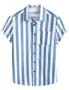 Das VATPAVE Herren Gestreifte Sommerhemd in Royalblau ist die ideale Wahl für warme Tage. Hergestellt aus leicht dehnbarem, weichem und leichtem Material, bietet es dir den ganzen Tag über höchsten Komfort. Die klassische Knopfleiste und die kurzen Ärmel sorgen für einen lässigen Look, der perfekt für verschiedene Anlässe geeignet ist.