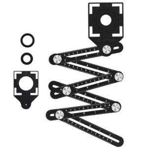 Entdecken Sie die vielseitige Winkelschablone Template Tool, das perfekte Messwerkzeug für Tischler, Fliesenleger und Heimwerker. Diese neue Version bietet eine 6-seitige Multi Angle Funktion und ist mit 3 präzisen Loch-Positionierungslöchern ausgestattet, die Durchmesser von 45 mm, 40 mm und 25 mm haben. Die integrierte Loch-Positionierung erleichtert das Messen und Anpassen an verschiedene Materialien wie Ziegel, Stein, Holz und Fliesen.