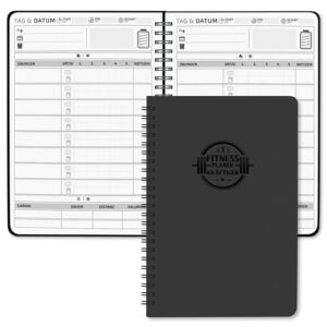 Entdecken Sie das Trainingstagebuch Deutsch von BIROYAL – Ihr idealer Begleiter für effektives Krafttraining. Mit einem eleganten Layout und einem hochwertigen Kunstdruckcover aus Synthetikleder bietet dieses Fitness Journal nicht nur Stil, sondern auch Funktionalität. Es ermöglicht die Aufzeichnung von 186 Übungen, wobei jede Seite Platz für 8 Trainingsübungen, 5 Sätze mit Wiederholungszahlen sowie Notizen für jede Übung bietet. Zusätzlich umfasst es 2 Aerobic-Trainingseinheiten zur Dokumentation von CARDIO, DAUER, DISTANZ und KALORIEN.
