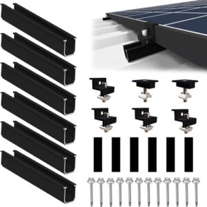 Entdecken Sie die Sorlpv Solarmodul Halterung, die ideale Lösung für die Montage von bis zu 2 Solarmodulen. Dieses PV Halterungs-Montageset umfasst eine 12 cm lange schwarze Schiene und eine verstellbare Klemme, die für Module mit einer Dicke von 30-35 mm geeignet ist. Hergestellt aus hochwertigem Aluminiummaterial AL6005-T5, bietet die Halterung eine hohe Korrosionsbeständigkeit und Langlebigkeit, während die Edelstahl 304 Schrauben auch unter rauen Bedingungen zuverlässig bleiben.