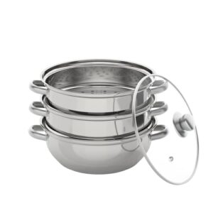 Der KANBCNG 3-lagige Edelstahl Dampfkocher mit einem Durchmesser von 28 cm bietet Ihnen eine ausgezeichnete Lösung zum schonenden Dämpfen von Lebensmitteln. Dank des innovativen 3-lagigen Designs können Sie mehrere Speisen gleichzeitig zubereiten, ohne dass diese sich vermischen. Der eng verbundene Topfkörper und der Rost sorgen für einen starken inneren Dampfstrom, der die Nährstoffe und den Geschmack der Lebensmittel bewahrt.