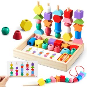 - Perlen Fädelspiel für Kreativität: Mit 11 Formen und 12 Farben bieten die Holzperlen endlose Möglichkeiten, um Farben, Formen und Zählen spielerisch zu erlernen.