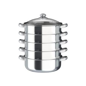 Das platzsparende, überlappende Design ermöglicht es Ihnen, mehrere Dampfgarer kompakt zu lagern, wodurch Ihre Küche stets ordentlich bleibt. Dieser 5-stufige Dampfgarer zeigt sich äußerst anpassungsfähig und funktioniert sowohl auf Induktions- als auch auf Elektroofen, Keramikherden und Gasherden.