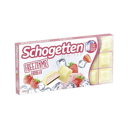 Entdecke mit Schogetten Freeze Me Erdbeer ein Stück eiskalten Schokoladengenuss! Einfach für 2 Stunden ins Gefrierfach legen und das unvergleichliche Geschmackserlebnis genießen. Die Limited Edition bietet dir die Möglichkeit, zwischen köstlichen Sorten wie Bourbon Vanille, Erdbeer und Pfirsisch Maracza zu wählen. Jede Tafel ist umhüllt von knackiger Schokolade und enthält eine leckere Eis-Füllung.