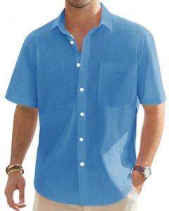 Entdecke das J.VER Leinenhemd für Herren in Kobaltblau, Größe XL. Dieses Kurzarm-Sommerhemd kombiniert hochwertige Baumwolle und Leinen, wodurch es besonders weich und bequem ist. Die hervorragende Atmungsaktivität sorgt dafür, dass du an warmen Tagen kühl und trocken bleibst. Dank der speziellen Technologie ist das Hemd knitterarm und pflegeleicht, was es zu einem praktischen Begleiter für deinen Alltag macht.