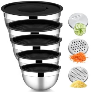 Zusätzlich erhalten Sie drei Reibeaufsätze, die perfekt in den Deckel integriert werden können, um das Zubereiten von Salaten und anderen Gerichten zu erleichtern. Mit diesem multifunktionalen Set können Sie Zutaten mühelos mischen, marinieren und aufbewahren.