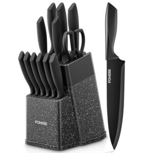 Entdecken Sie den FOHERE Messerblock mit Messer, ein 13-teiliges Messerset, das sowohl für professionelle als auch für Amateurköche ideal ist. Jedes Messer ist aus hochwertigem Edelstahl gefertigt und mit einer speziellen BO-Oxid-Technologie beschichtet, die eine langfristige Anti-Rost-Leistung garantiert. So bleibt Ihr Set in einwandfreiem Zustand, auch nach mehreren Spülmaschinengängen.