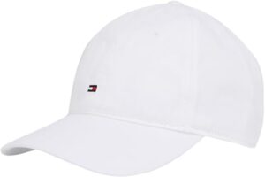 Die Tommy Hilfiger Herren Cap Flag Soft 6 Panel aus Baumwolle in strahlendem Weiß (Th Optic White) ist die ideale Kopfbedeckung für modebewusste Männer. Mit ihrem PREMIUM DESIGN sticht die Cap durch das aufgestickte Logo auf der Vorderseite sowie das Logo-Branding auf der Rückseite hervor. Der Knopf auf der Krone verleiht der Kappe eine besondere Note, während der gebogene Schirm dich effektiv vor unangenehmer Helligkeit schützt.