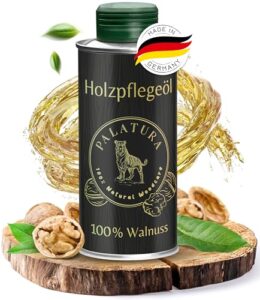 Entdecken Sie das Palatura Walnussöl für Holz – die umweltfreundliche Lösung für die Pflege und den Schutz Ihrer Holzoberflächen, sowohl im Innen- als auch im Außenbereich. Dieses lebensmittelechte Öl dringt tief in das Holz ein und sorgt für eine sichere und effektive Pflege von Holztischen und Arbeitsplatten. Anders als bei vielen Leinöl-Firnissen enthält unser Produkt keine Trockenstoffe, was es zu einer idealen Wahl für unbehandelte Holzarten macht.