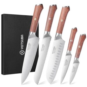 YOTSUBA Küchenmesser Set 5-teilig Messerset Scharf Küche aus hochwertigem Carbon Edelstahl, Ultra Scharfes Messerset mit Kochmesser, Brotmesser, Santokumesser, Allzweckmesser, Gemüsemesser