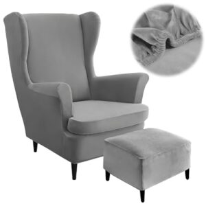 Schützen Sie Ihren Ohrensessel mit unserem hochwertigen 3-teiligen Ohrensessel Überzug aus dunkelgrauem Samt. Dieser Überzug besteht aus hochelastischem Material, das nicht nur weich und atmungsaktiv ist, sondern auch eine lange Lebensdauer garantiert. Er eignet sich perfekt für den täglichen Gebrauch und passt sich spielend der Form Ihres Sessels an.