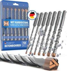 Statten Sie sich jetzt mit dem STONE REEF® SDS Plus Betonbohrer Set aus und meistern Sie Ihre Projekte mit Leichtigkeit!