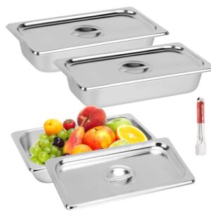 NZZVNZ 3 Set Panier-Set aus Edelstahl, Panier mit Deckel 32.5 * 17.5 * 6.5cm Schale zum Panieren Brotbackform Brottopf Lebensmittelboxen für Schnitzel Fleisch Fisch