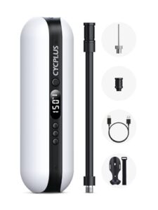 Die CYCPLUS Luftpumpe ist der ideale Begleiter für Radfahrer, Motorradfahrer und Autofahrer. Mit einem beeindruckenden Luftdruck von bis zu 150 PSI (10,3 Bar) pumpen Sie Ihren Fahrradreifen in nur 2 Minuten vollständig auf. Diese vielseitige Mini-Reifenpumpe wird mit verschiedenen Düsen geliefert, darunter eine amerikanische und eine französische Düse sowie eine Luftnadel, sodass sie für Mountainbikes, Rennräder, Motorräder und Autos geeignet ist.