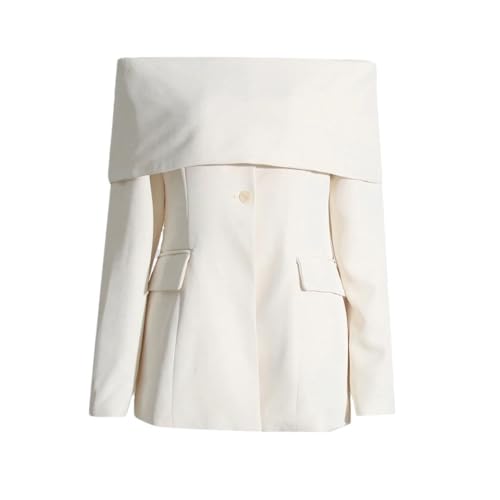 Der Frauen Minimalistische Blazer Forslash Neck Langarm Gespleißt Taste Off Schulter in Apricot (Größe XL) ist die ideale Wahl für berufliche und private Anlässe. Hergestellt aus weichem, atmungsaktivem Stoff und ausgestattet mit einem hochwertigen Futter, bietet dieser Blazer nicht nur Komfort, sondern auch eine ansprechende Optik.