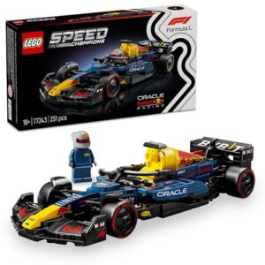 Im Set ist auch eine F1-Minifigur enthalten, die im typischen Red Bull Rennoverall und Helm gestaltet ist und perfekt ins Cockpit des Modells passt. Dieses LEGO Set bietet nicht nur ein fesselndes Bauerlebnis, sondern eignet sich auch hervorragend zum Ausstellen. Zeige dein neuestes Sammlerstück stolz im Wohnzimmer oder Büro.