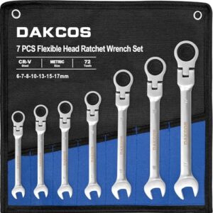 DAKCOS 7tlg. Kombi-Ratschenschlüssel Set, 6,7,8,10,13,15,17mm Metrischer Ratschenringmaulschlüssel mit Gelenk aus CR-V mit mattierter Chromoberfläche teilen: