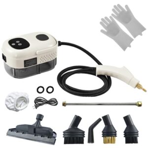 Entdecken Sie den leistungsstarken Dampfreiniger Handgerät 2500W, das ideale tragbare Heimgerät für eine gründliche Reinigung. Mit einer beeindruckenden Heizleistung von nur 15 Sekunden verwandelt er Wasser in 3,0 BAR Hochdruckdampf, um hartnäckigen, fettigen Schmutz und Flecken mühelos zu entfernen.