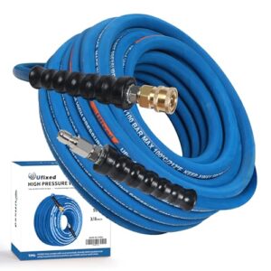 Hergestellt aus hochwertigem, nicht abfärbendem synthetischem Gummi, überzeugt der Schlauch durch Langlebigkeit und eine hervorragende Abrieb- sowie Wetterbeständigkeit. Er hält einem Arbeitsdruck von bis zu 4000 PSI stand und bietet mit einem Berstdruck von bis zu 16000 PSI eine beeindruckende Leistung. Der solide Messinganschluss garantiert eine leckfreie und korrosionsbeständige Verbindung, ideal für Hausbesitzer und Fachleute.