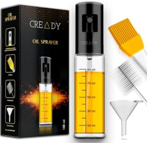 Entdecken Sie den CREADY® Ölsprüher für Speiseöl in elegantem Schwarz mit einem Fassungsvermögen von 100 ml – ein unverzichtbares Küchen-Gadget für jeden Kochliebhaber. Dieser vielseitige Ölsprüher ermöglicht Ihnen, die Ölmenge beim Kochen mühelos zu kontrollieren. Ein einfacher Druck auf den Sprühkopf erzeugt eine gleichmäßige Sprühmenge, während die transparente Flasche Ihnen stets einen Blick auf den verbleibenden Ölstand gewährt.