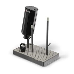 Die gummierten Noppen sorgen für eine kratzfreie und stabile Aufhängung, sodass Ihre Flaschen sicher und ohne Beschädigungen platziert werden können. Die 100% wasserdichte Abtropfschale verhindert Kalkflecken und Wasseransammlungen, während die rutschfesten Füße einen stabilen Halt auf jeder Oberfläche garantieren.