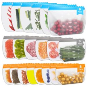 Im Set enthalten sind 20 multifunktionale Beutel: 6 große Beutel (26,6 x 20 x 7,1 cm, 3200ml), 6 Sandwichbeutel (22 x 18 x 5,1 cm, 1600ml) und 8 mittlere Snackbeutel (22 x 12 x 5,1 cm, 800ml). Egal ob für Gemüse, Früchte, Snacks oder Sandwiches, diese gefrierbeutel sind vielseitig einsetzbar und ideal für die Reise.