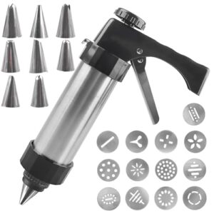 Die VEGOATY Gebäckpresse für Spritzgebäck ist das ideale Werkzeug für alle Hobbybäcker, die kreative und köstliche Leckereien zaubern möchten. Dieses Set enthält 13 verschiedene Formen und 8 Düsen, die Ihnen helfen, Ihre Backkünste zu entfalten. Die hochwertige Edelstahlkonstruktion sorgt für Langlebigkeit, während die BPA-freien und geruchlosen ABS-Düsen eine sichere Anwendung garantieren.
