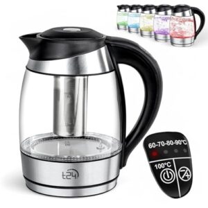 Der Glas Wasserkocher mit Teesieb bietet Ihnen eine elegante Lösung für die Zubereitung von heißem Wasser und Tee. Mit einem Fassungsvermögen von 1,8 Litern können Sie problemlos mehrere Tassen auf einmal zubereiten. Der transparente Glasbehälter ermöglicht es Ihnen, den Wasserstand und den Erhitzungsvorgang jederzeit im Blick zu behalten, während das moderne Design Ihrer Küche eine stilvolle Note verleiht.
