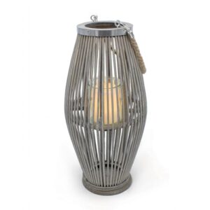 XXL Bambus Laterne Shabby grau mit Kerzenglas – 50 x 24 cm – Holz Windlicht mit Jute Seil zum Hängen – Garten Deko Kerzenhalter Gartenlaterne Leuchte zum Hängen für Balkon Terrasse Innen Außen teilen: