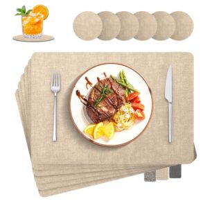 Tischsets Abwaschbar, 6er Set Leinenimitat Lederoptik Platzset und Untersetzer, Hitzebeständig Doppelseitigen, 30x43cm Tischuntersetzer rutschfest für Hause Küche Restaurant und Hotel(Beige)