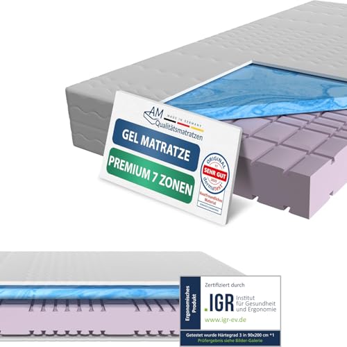 AM Qualitätsmatratzen Premium Gel-Taschenfederkernmatratze 90x200cm H3 24cm - Made in Germany & Oeko TEX Siegel - 7 Zonen Gel-Federkernmatratze 90x200 mit 1000 Federn & Lyocell Bezug*