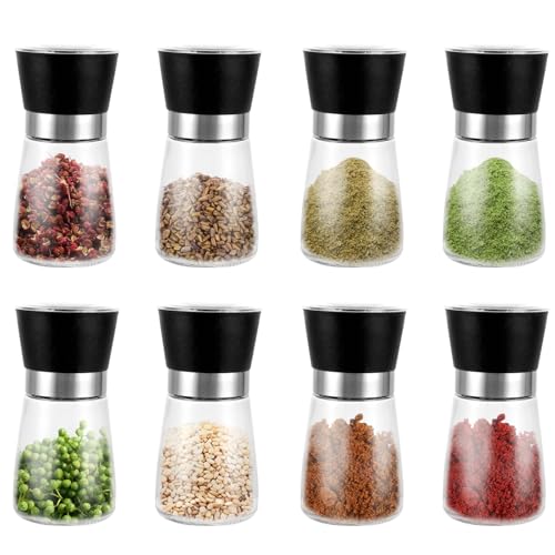 FWEEK 6er Set Salz und Pfeffermühle, 180 ml Gewürzmühle mit Manuell Einstellbarem Keramikmahlwerk, 13X6.4CM Transparent Gewürzmühlen Set für Verschiedene Gewürze*