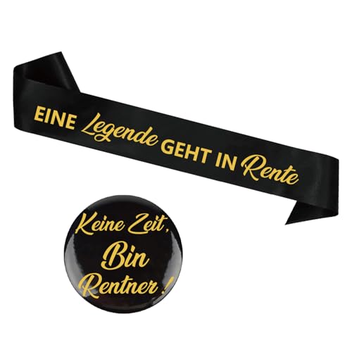 2 Stück Rentner Geschenk-Rentner Schärpe und Button Ruhestand, Renteneintritt Geschenk, Rente Deko Schwarz Gold für Pensionierung Party Abschiedsfeier Kollegin*