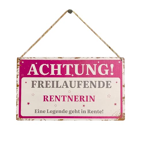 Rentnerin Geschenk Renteneintritt Geschenk Frau Ruhestand Geschenk Abschiedsgeschenk Kollegin Freilaufender Rentnerin Holzschild Retro für Wand,Tür zum Aufhängen zur Pensionierung und Rentenbeginn*