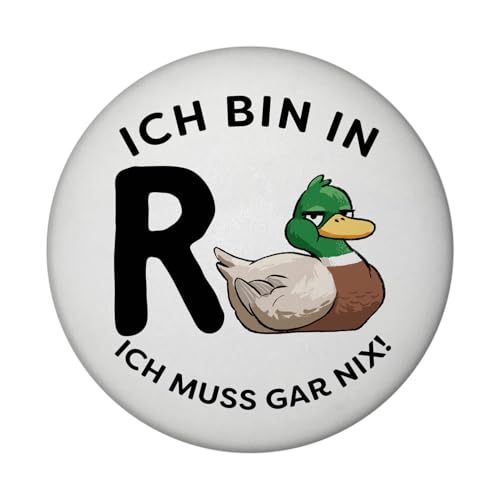 Ente Ruhestand Magnet rund mit Spruch Ich Bin in R-Ente Ich muss gar nix Witziges Rentner Wortspiel Ruhestand Tier Reisemotiv - Lustige Idee für Renteneintritt*